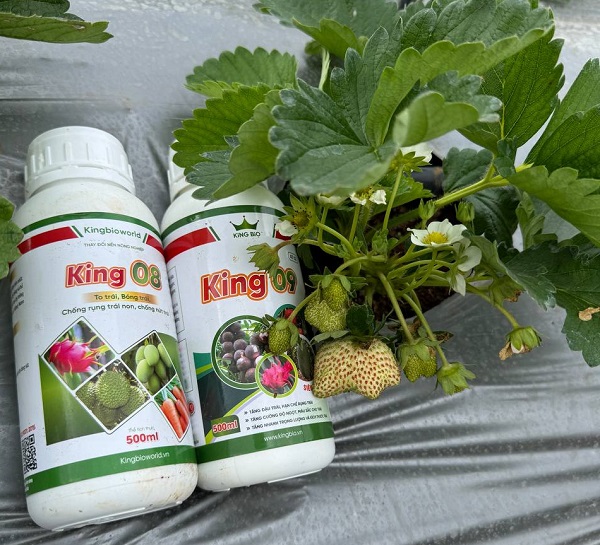 Sản phẩm của Kingbioworld giúp dâu tây khoẻ mạnh, sai hoa, đậu quả tốt