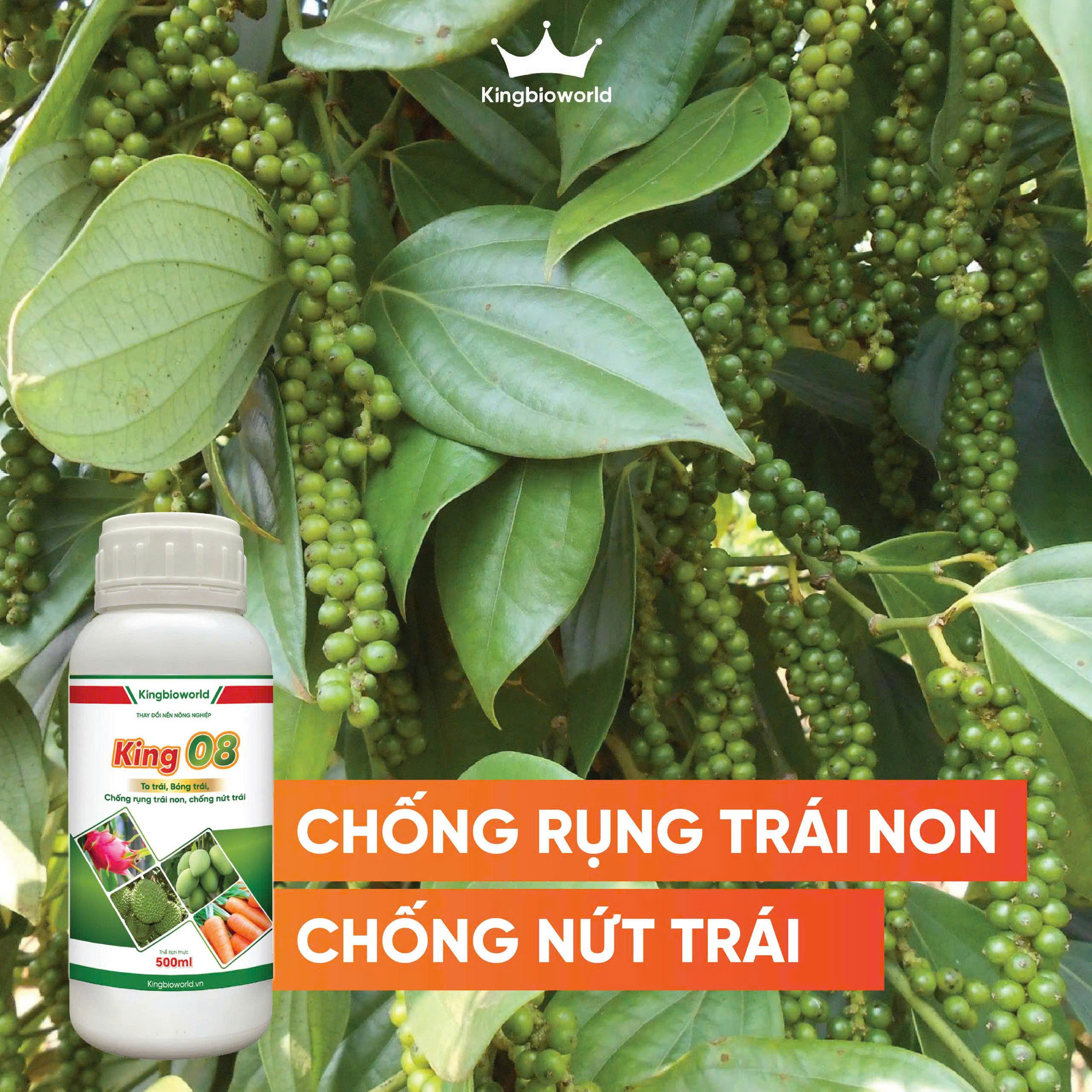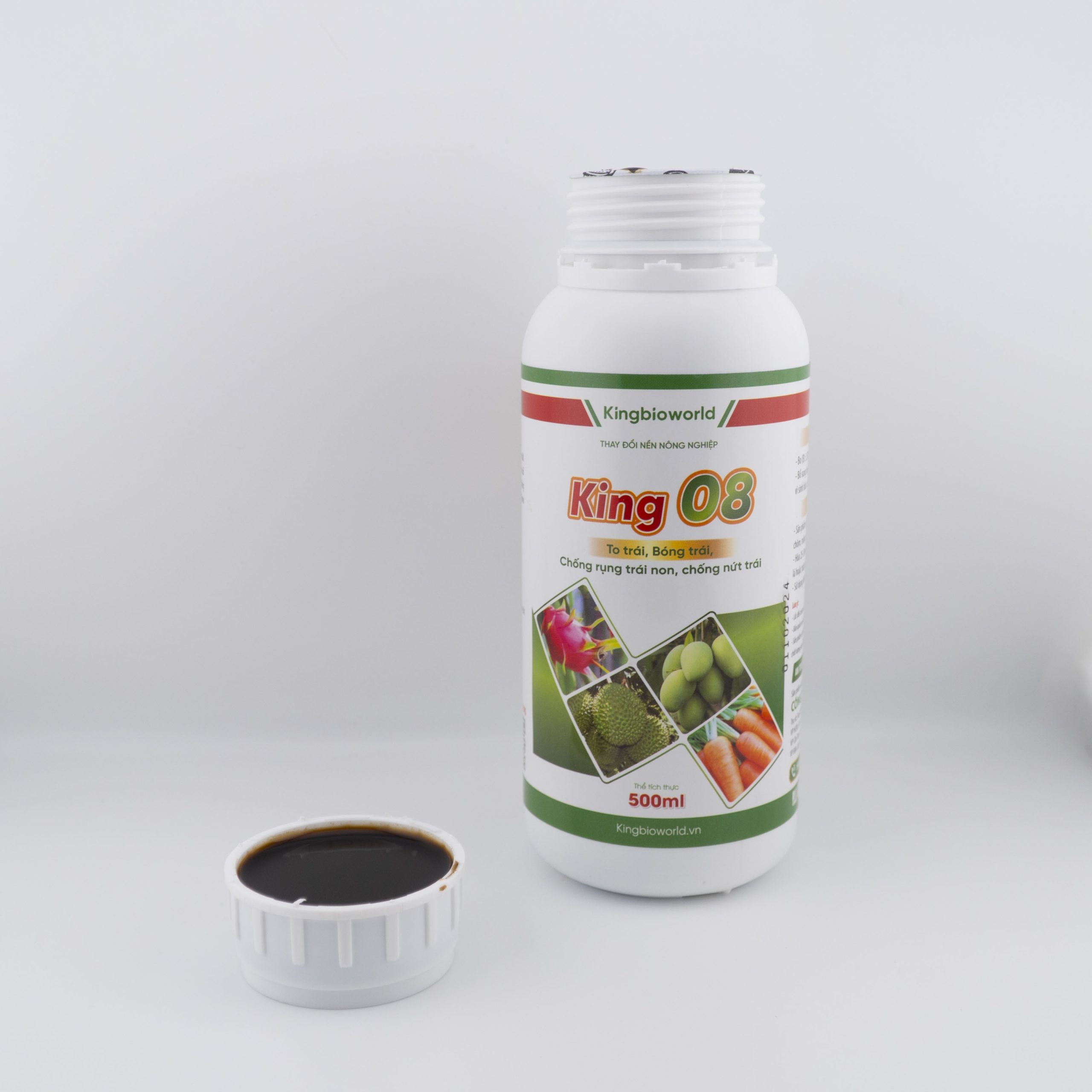 King 08 là sản phẩm giúp cây trồng tăng tỷ lệ đậu trái, chống rụng trái non, xanh gai, chống nứt vỡ trái. Sản phẩm được sản xuất theo công nghệ vi sinh hiện đại, đảm bảo an toàn cho con người, thiên địch và đất trồng.