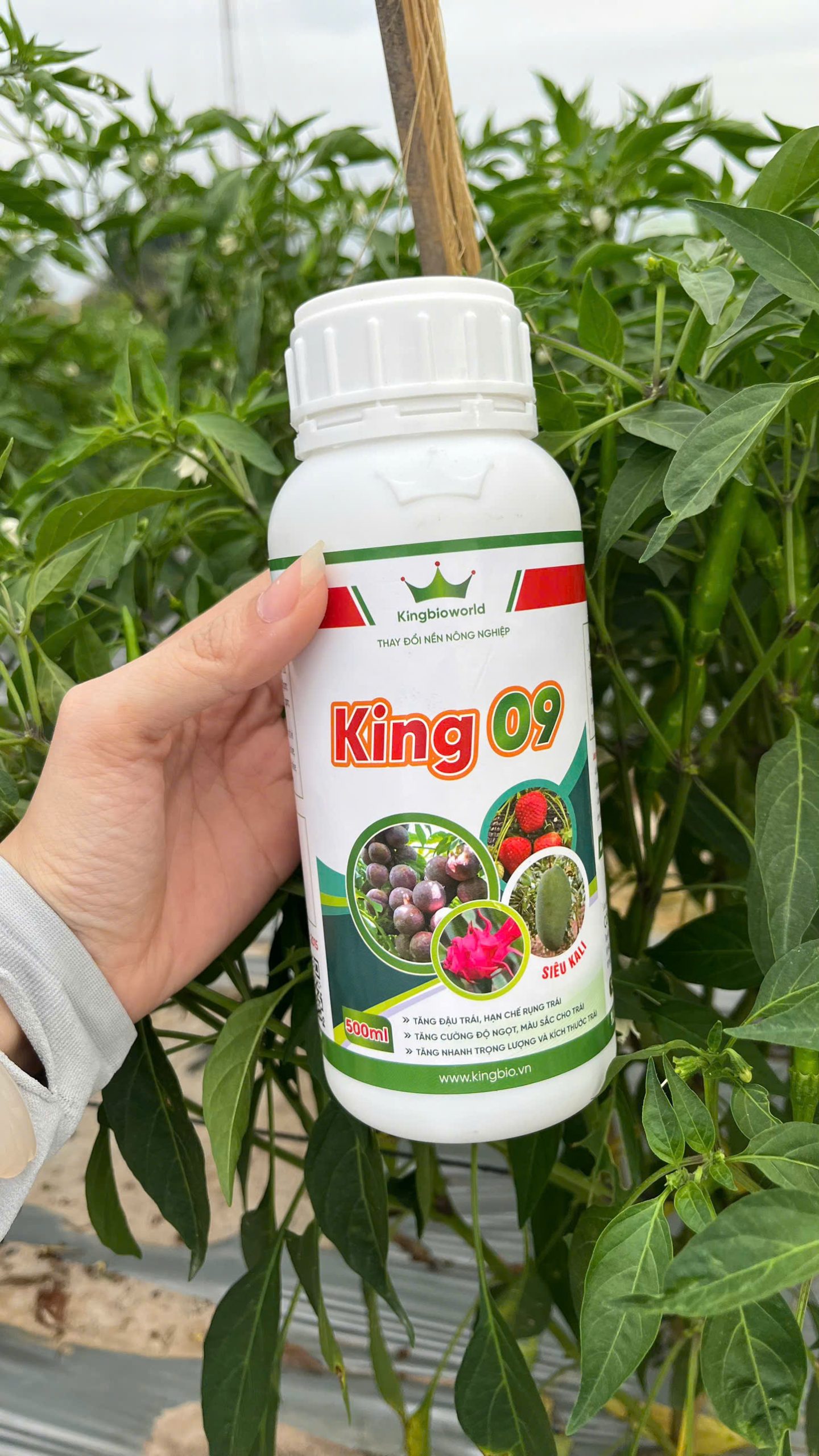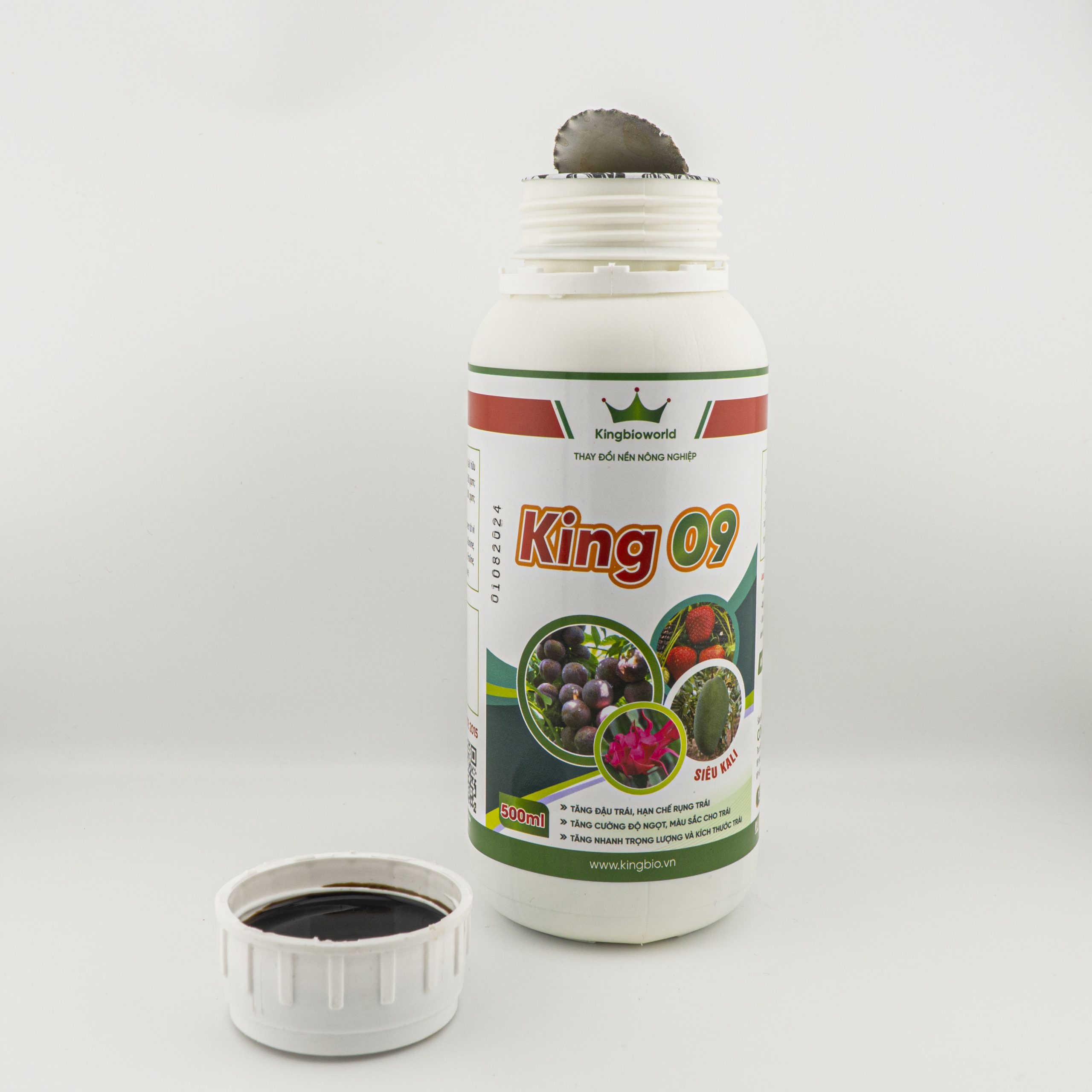 King 09 là sản phẩm giúp tăng kích thước trái (củ), tăng độ ngọt cho trái, giúp đẹp trái, bóng trái. Sản phẩm được sản xuất theo công nghệ vi sinh hiện đại, đảm bảo an toàn cho con người, thiên địch và đất trồng.