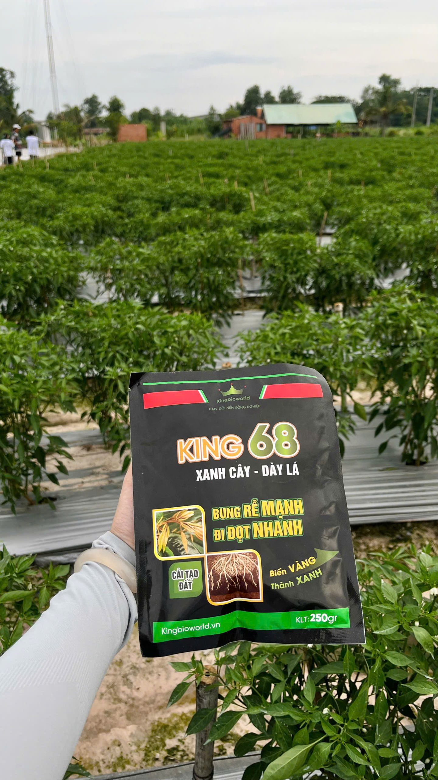King 68 là chế phẩm sinh học kích thích cây bung rễ mạnh, bật chồi nhanh, phát đọt, cải tạo đất, giải độc hữu cơ. Sản phẩm được sản xuất theo công nghệ vi sinh hiện đại, đảm bảo an toàn cho con người, thiên địch và đất trồng.
