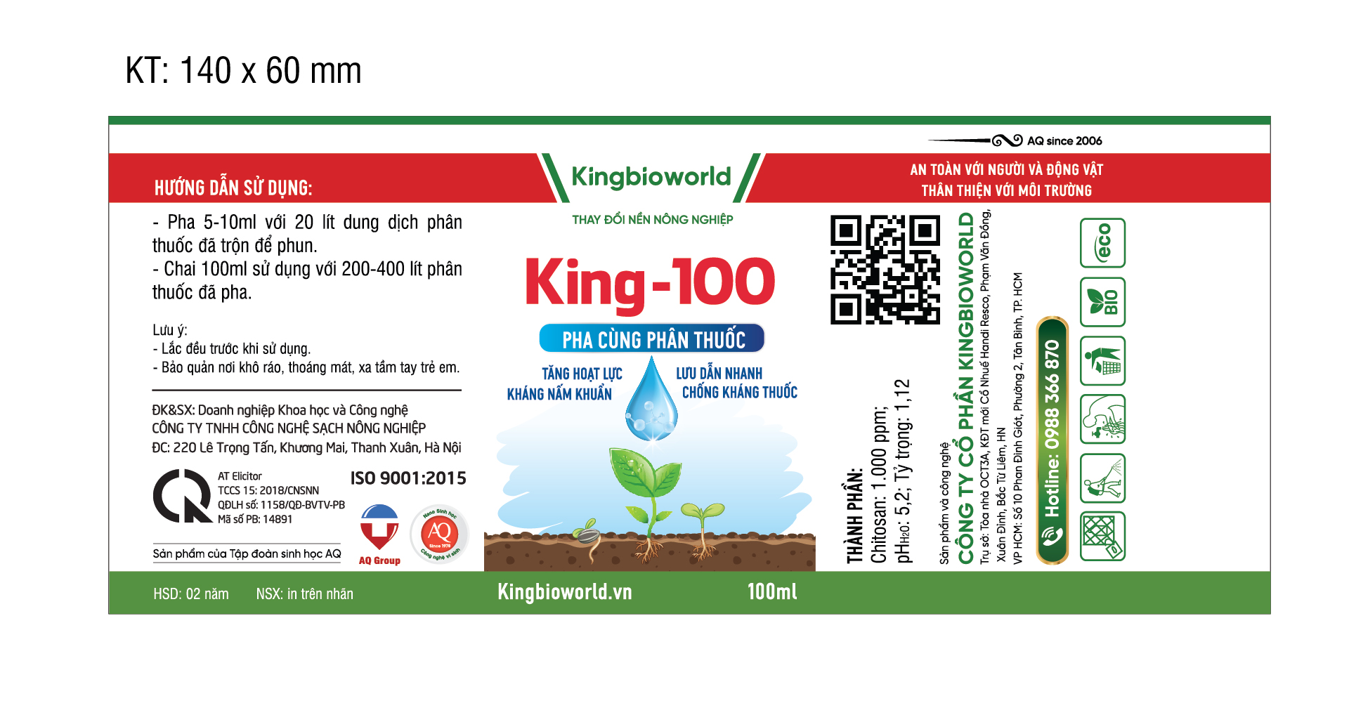 Chúc bà con chăm cây hiệu quả, tiết kiệm chi phí tối đa cùng sản phẩm King 100. Nếu bà con cần tư vấn kỹ hơn về sản phẩm, vui lòng liên hệ hotline 0988.366.870 để được kỹ sư giải đáp miễn phí.